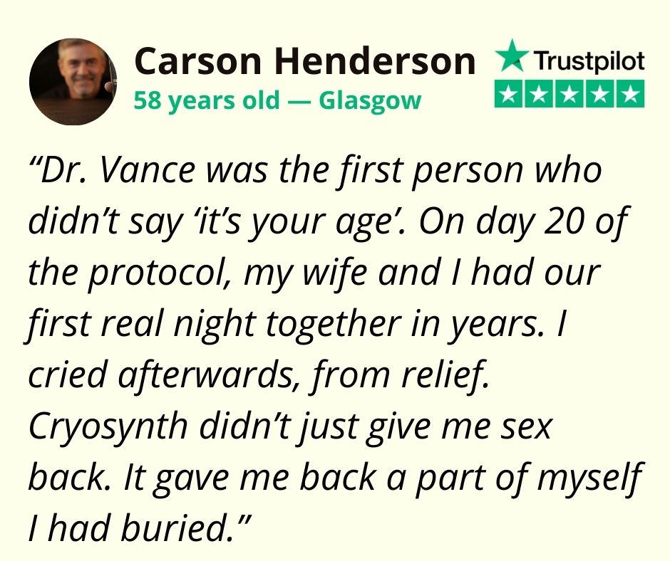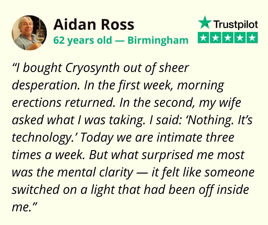 Cryosynth does not just return the erection. It returns the posture of a man who occupies space in the world.