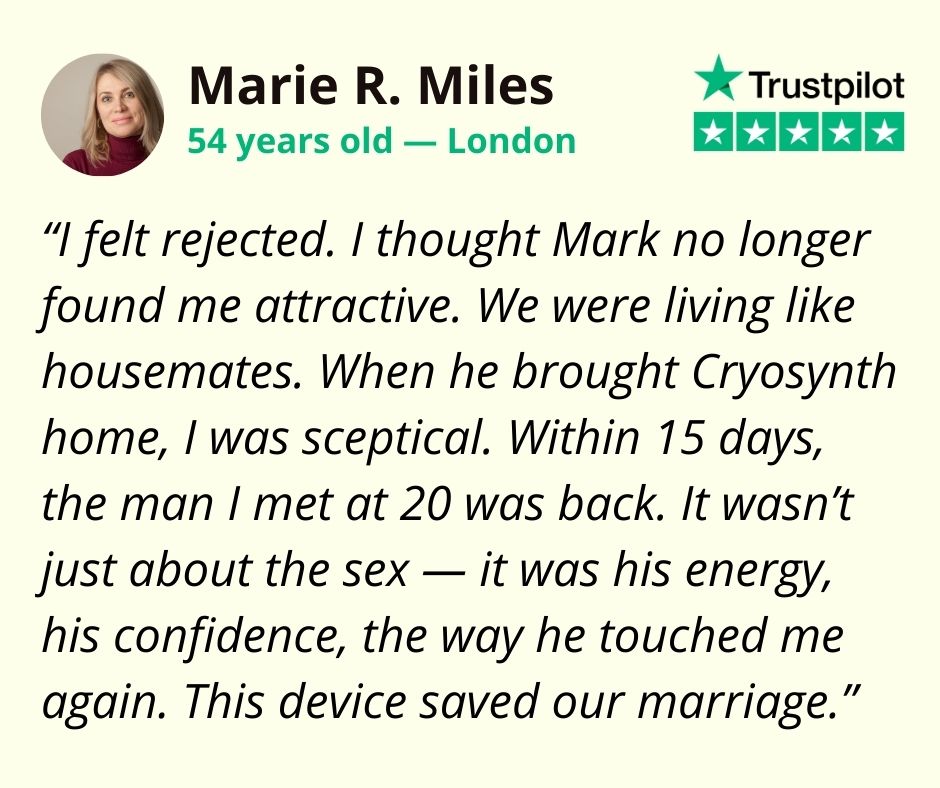 Arthur was the first civilian to test Cryosynth outside a hospital setting. His instructions were simple: 5 minutes of application to the glans, 2 hours before any intended intimacy.